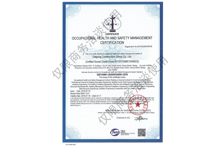 戴工建設集團有限公司,創(chuàng)建于2009年,注冊資本9888萬元人民幣。公司位于北京市大興區(qū)。具有建委頒發(fā)的建筑裝飾裝修專業(yè)壹級,防水保溫工程專業(yè)壹級,建筑幕墻專業(yè)貳級,消防設施專業(yè)貳級,電子與智能化專業(yè)貳級,特種工程(結構補強)專業(yè)不分等級,建筑機電安裝專業(yè)貳級,環(huán)保工程專業(yè)貳級,鋼結構專業(yè)貳級,建筑工程總承包貳級,建筑裝飾工程設計專項甲級,展覽陳列工程設計與施工壹級,展覽展示工程壹級...更多>>